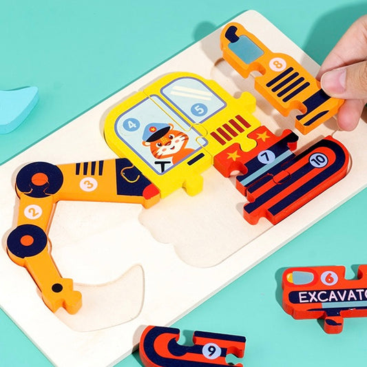 Trucks & Diggers Wooden Numbered Puzzles - Assorted Designs