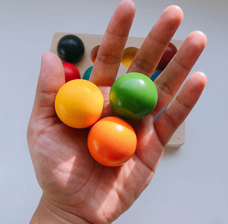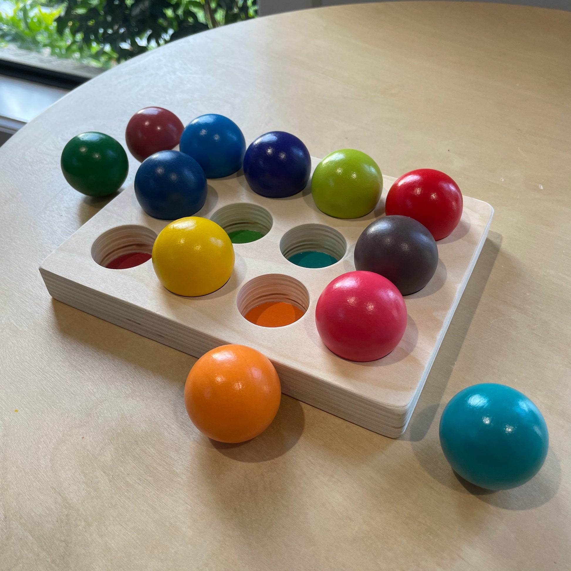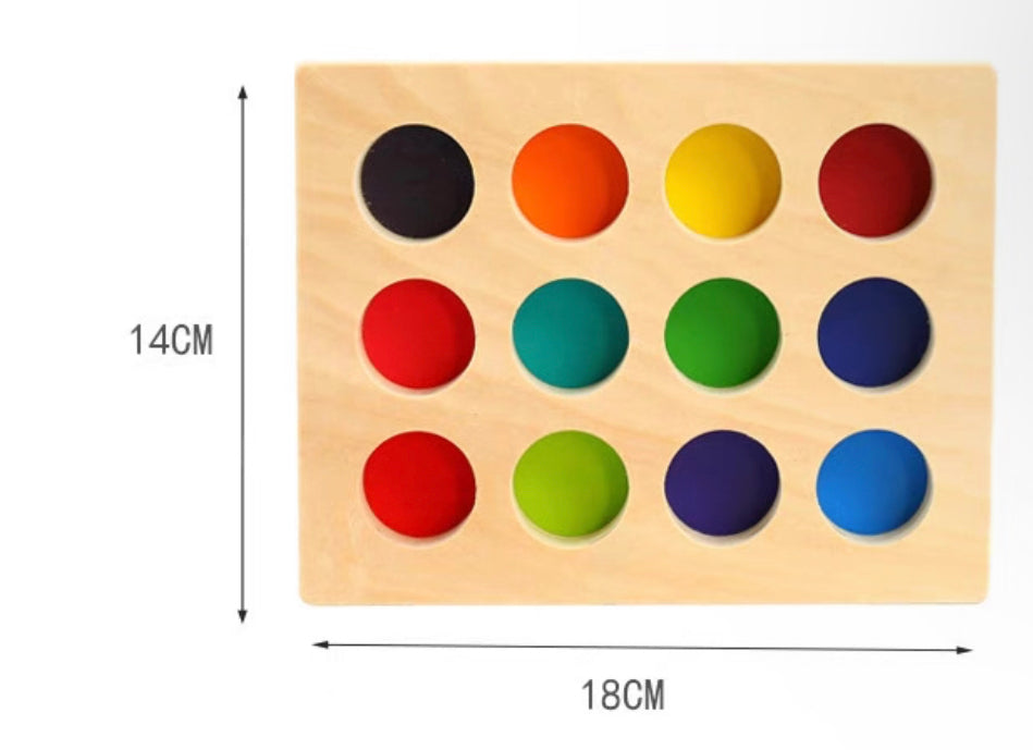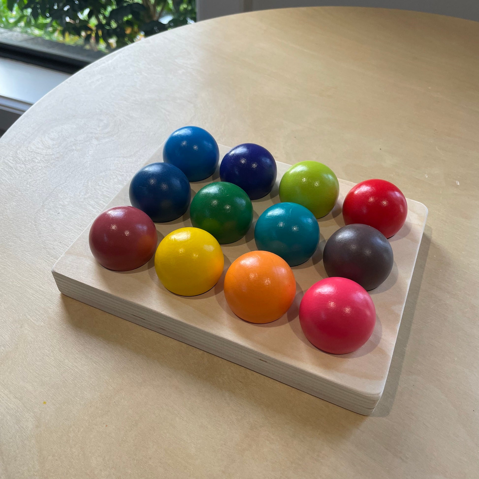12 Rainbow Wooden Balls with Colour Sorting Tray