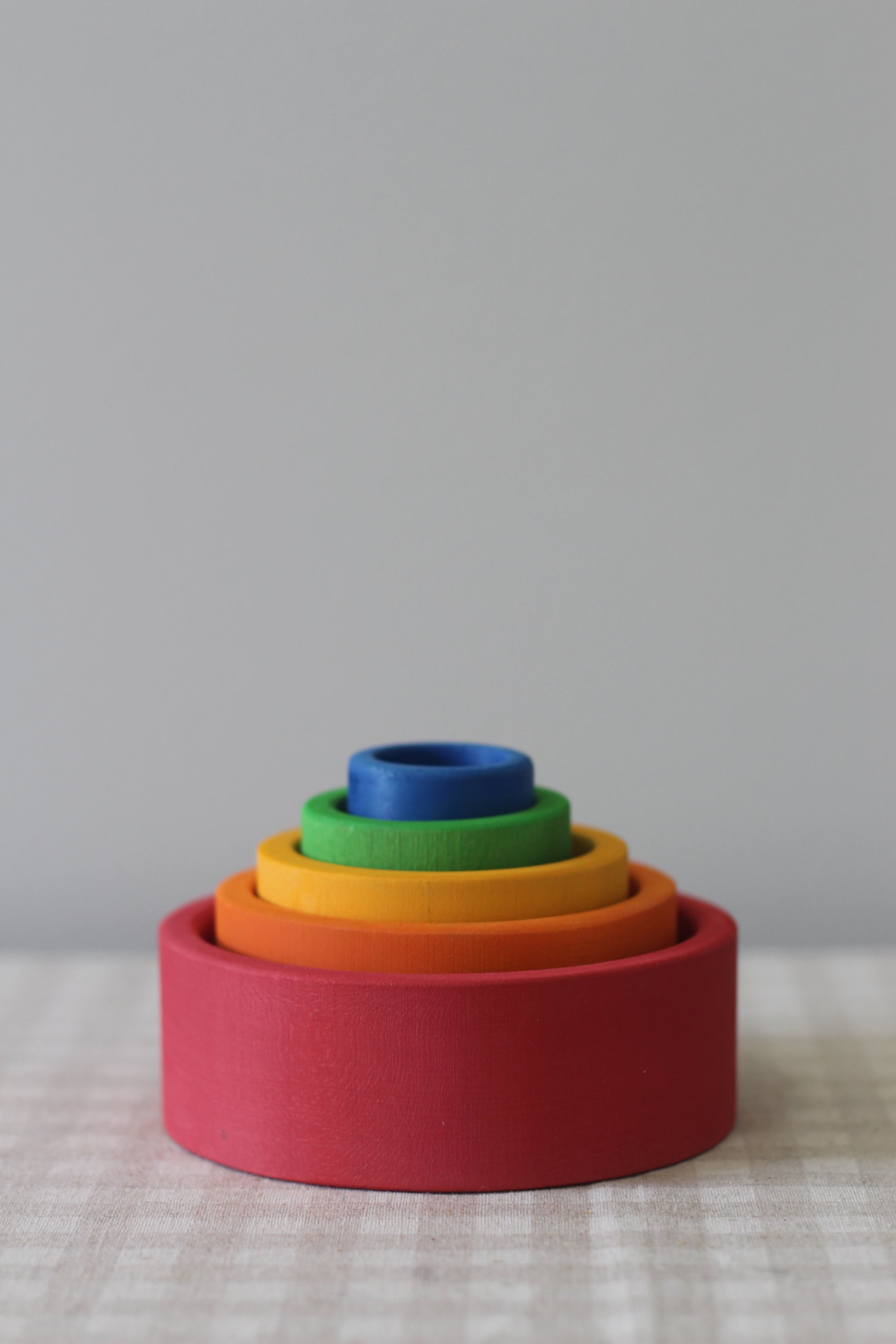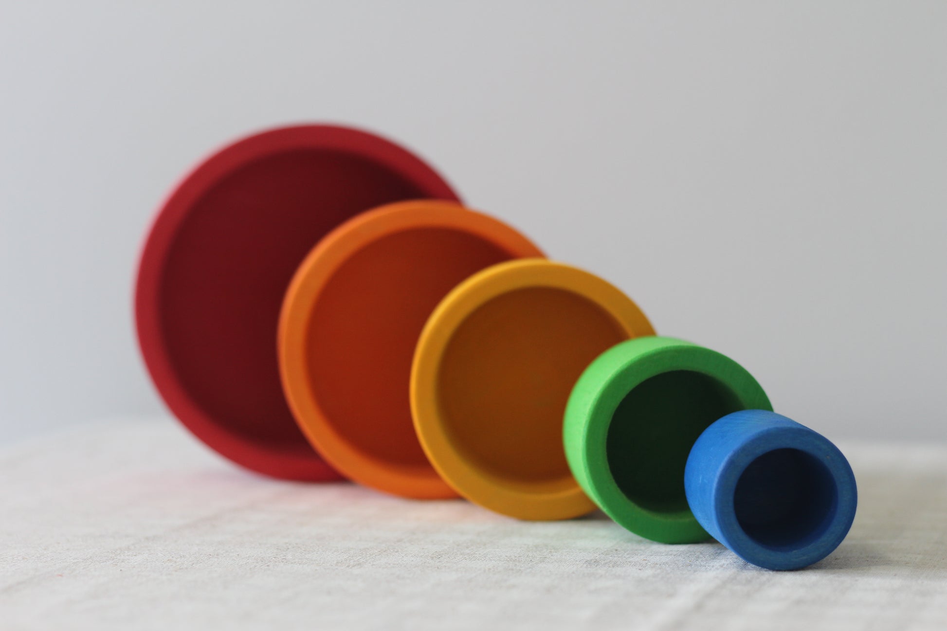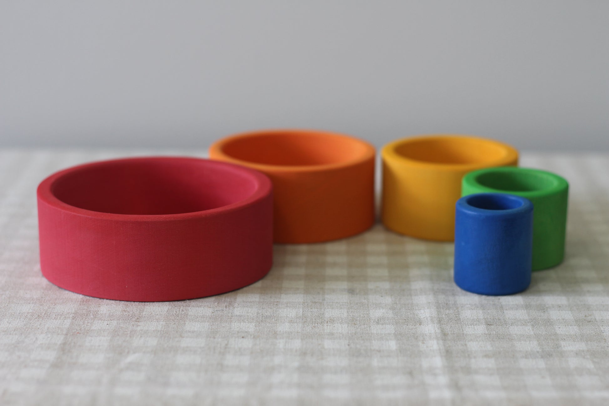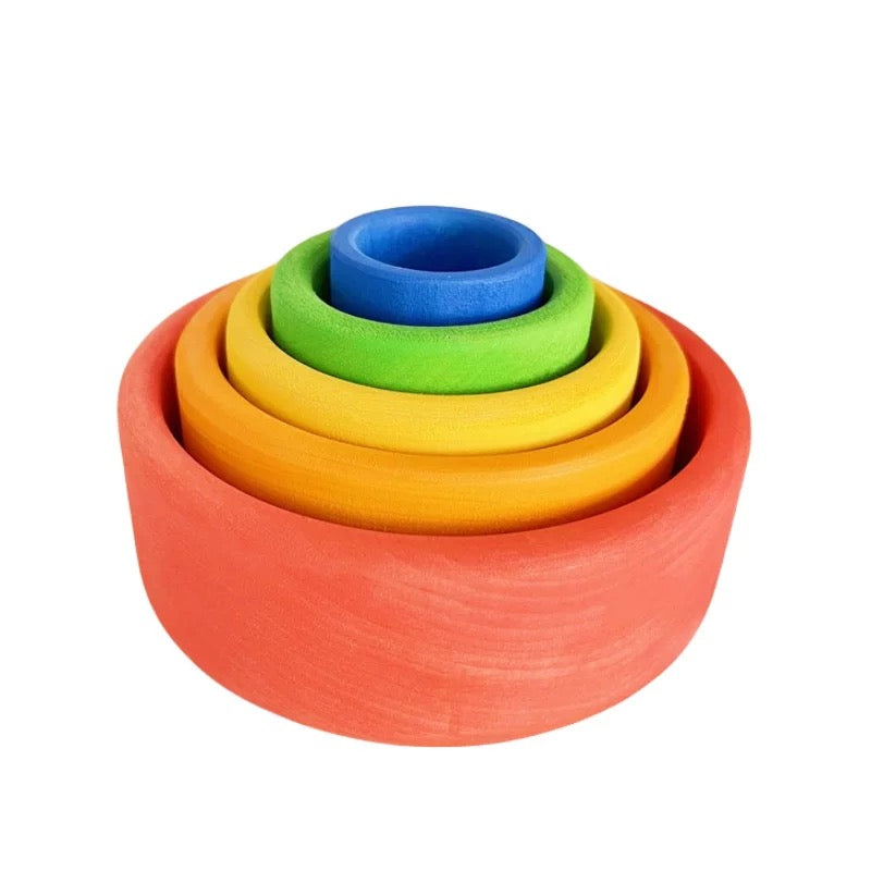 Introducing our 5 Rainbow Nest Bowls, each in a different size and color, offering endless possibilities for exploration and play!