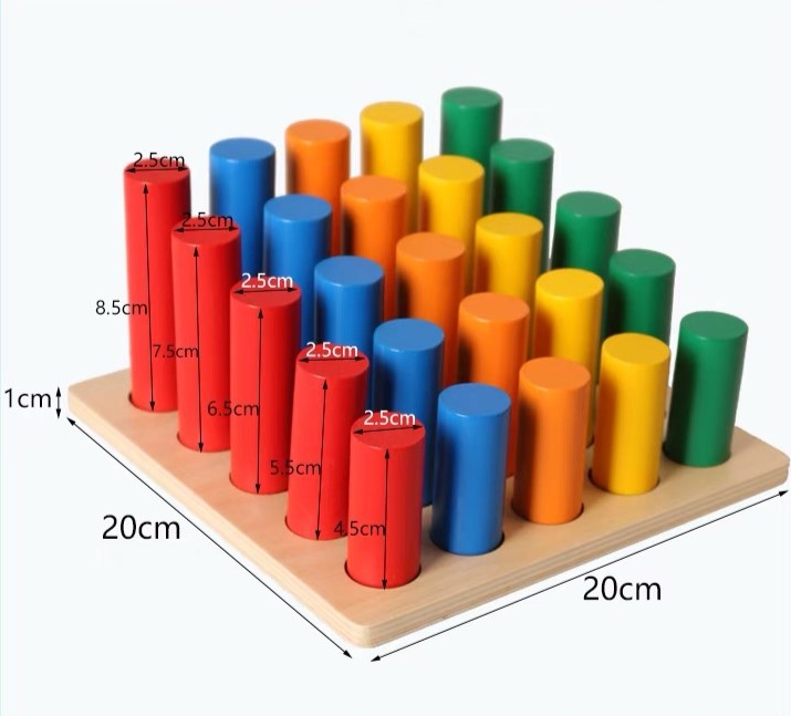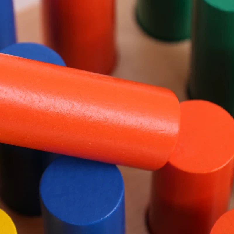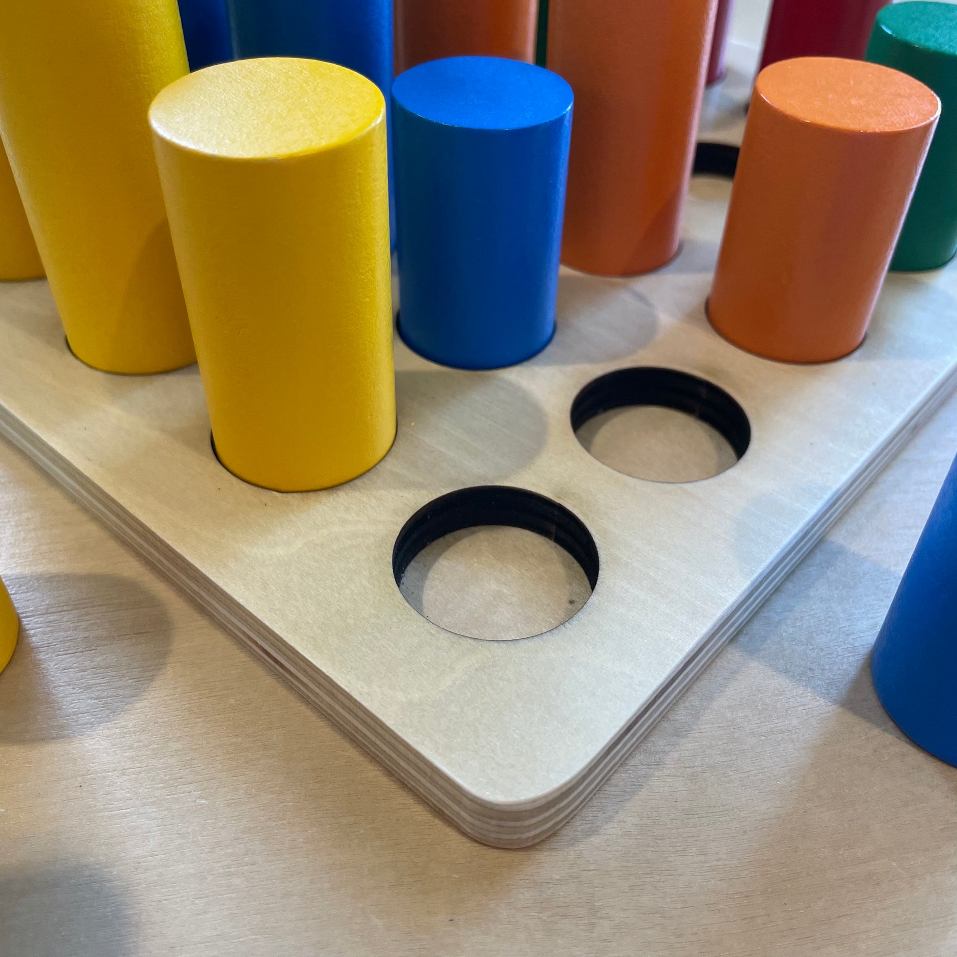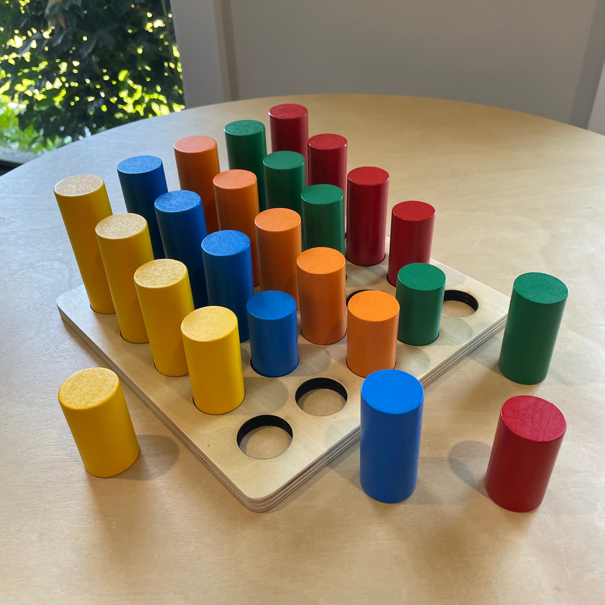 Introducing our Montessori Peg Board, a colorful and tactile learning tool designed to engage young minds! With 25 cylindrical logs in five vibrant colors and varying heights, children can explore patterns, sorting, and spatial relationships while enhancing fine motor skills. Inspired by the Montessori method, this educational resource encourages independent discovery and fosters creativity. Whether stacking, sorting, or arranging, the Montessori Peg Board offers endless opportunities for hands-on learning and sensory exploration.
