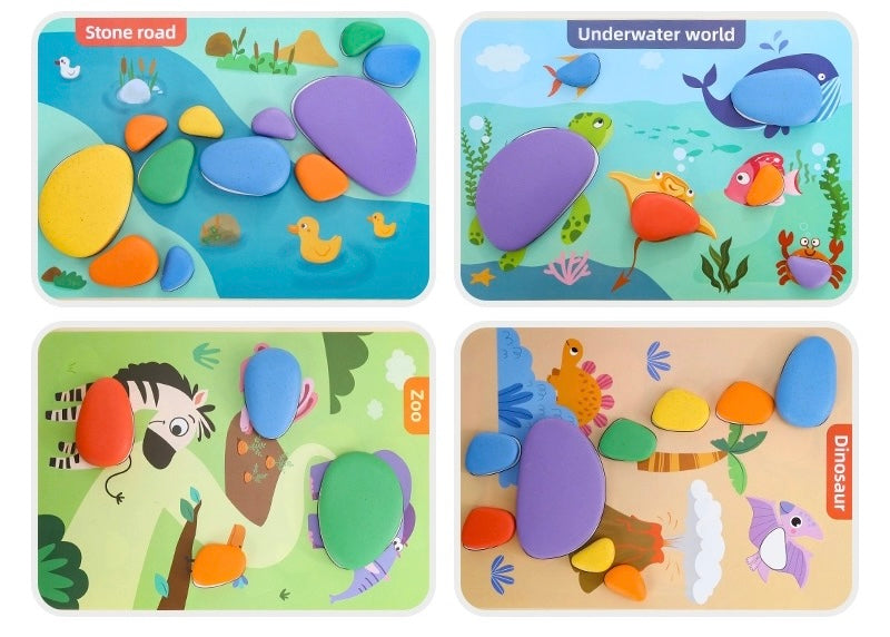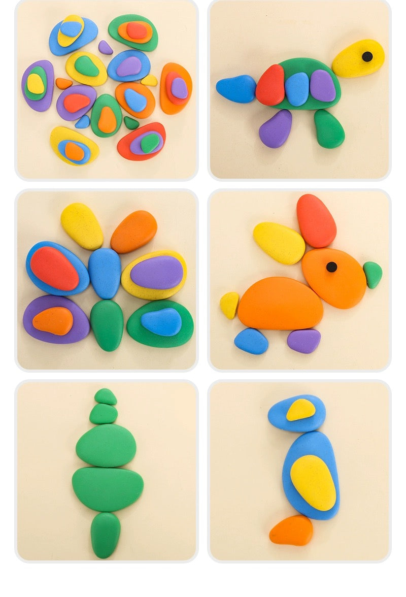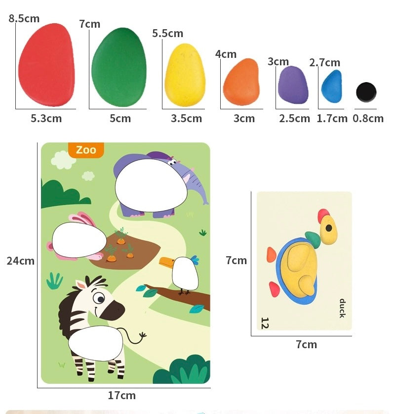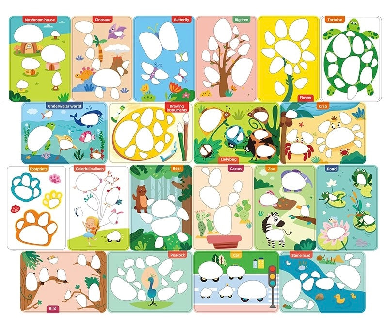 Explore creativity with our Stone Art Kit, a creative activity for kids! Featuring realistic-looking stones in vivid colors, this kit inspires imaginative play. Kids can follow included templates to create pictures or try building animals with inspiration cards. Alternatively, they can let their creativity roam freely and craft their own designs. Perfect for enhancing fine motor skills and cognitive development, this engaging kit offers endless artistic possibilities.