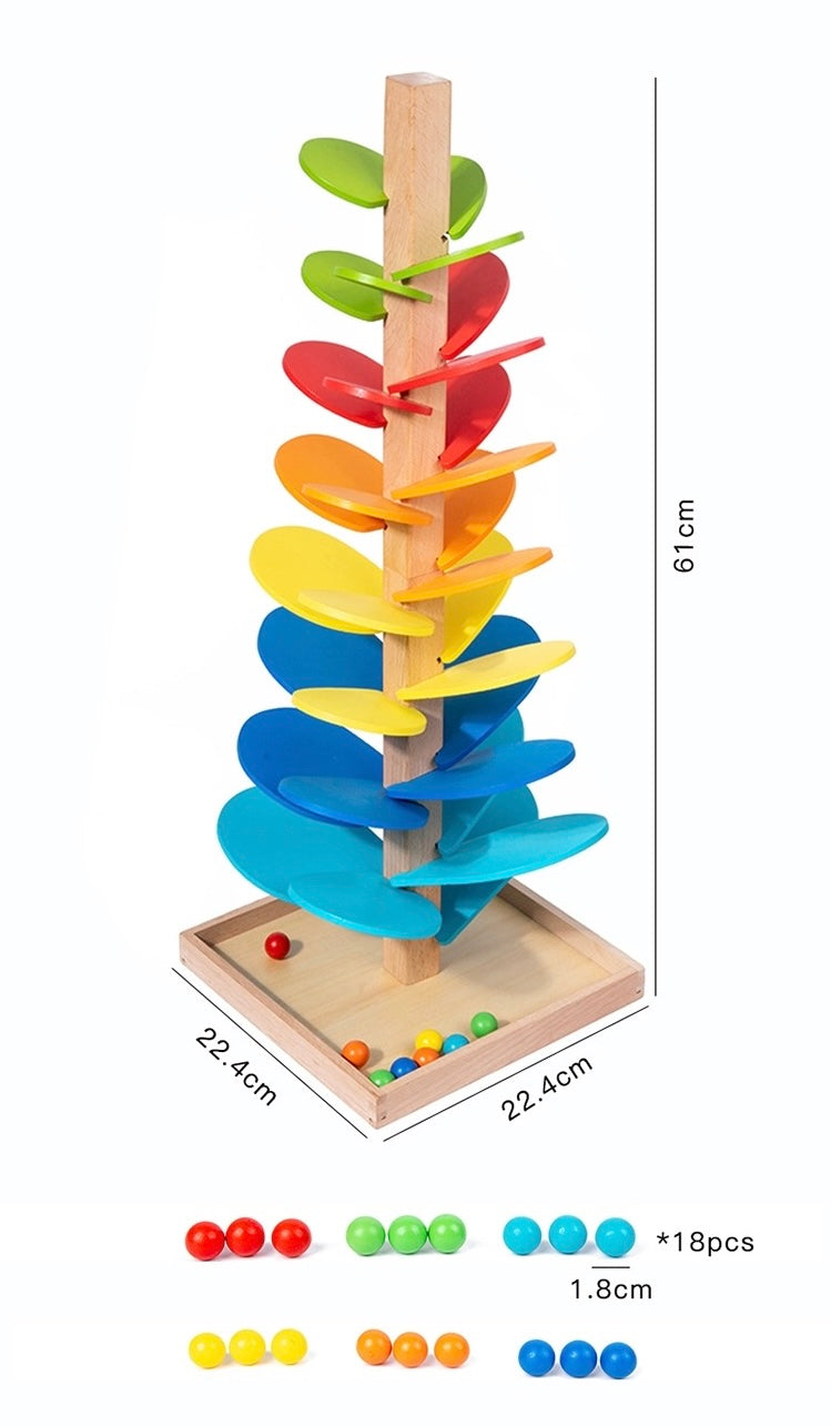 Engage in enchanting play with our Musical Tree Set! Release the small wooden balls individually or together, creating a symphony as they wind down the leaves. Children will delight in the captivating melodies and soothing rhythm, fostering joy and learning. Experiment with various-sized marbles for diverse musical experiences—an ideal blend of fun and education!