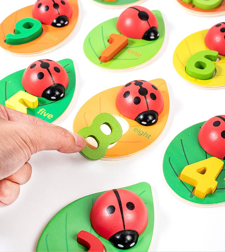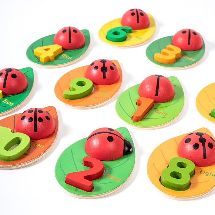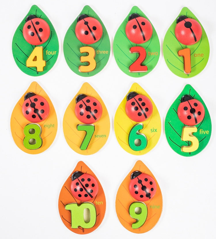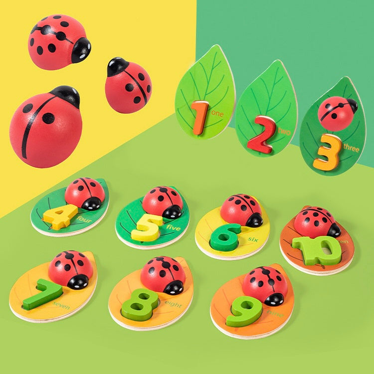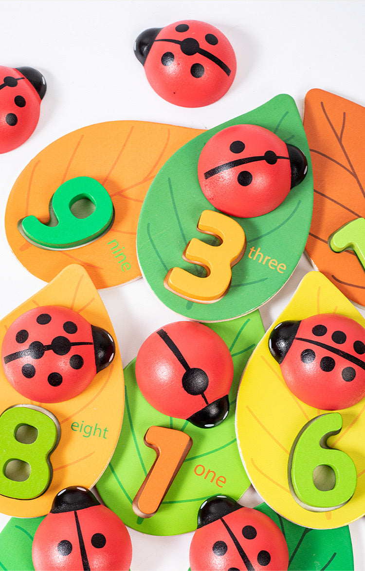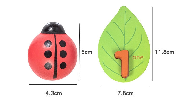 With 10 charming wooden ladybugs and corresponding leaves numbered 1-10, kids embark on a fun counting adventure. Match ladybug dots to leaf numbers for interactive learning. Perfect for honing counting skills while fostering a love for numbers in an engaging, hands-on way!