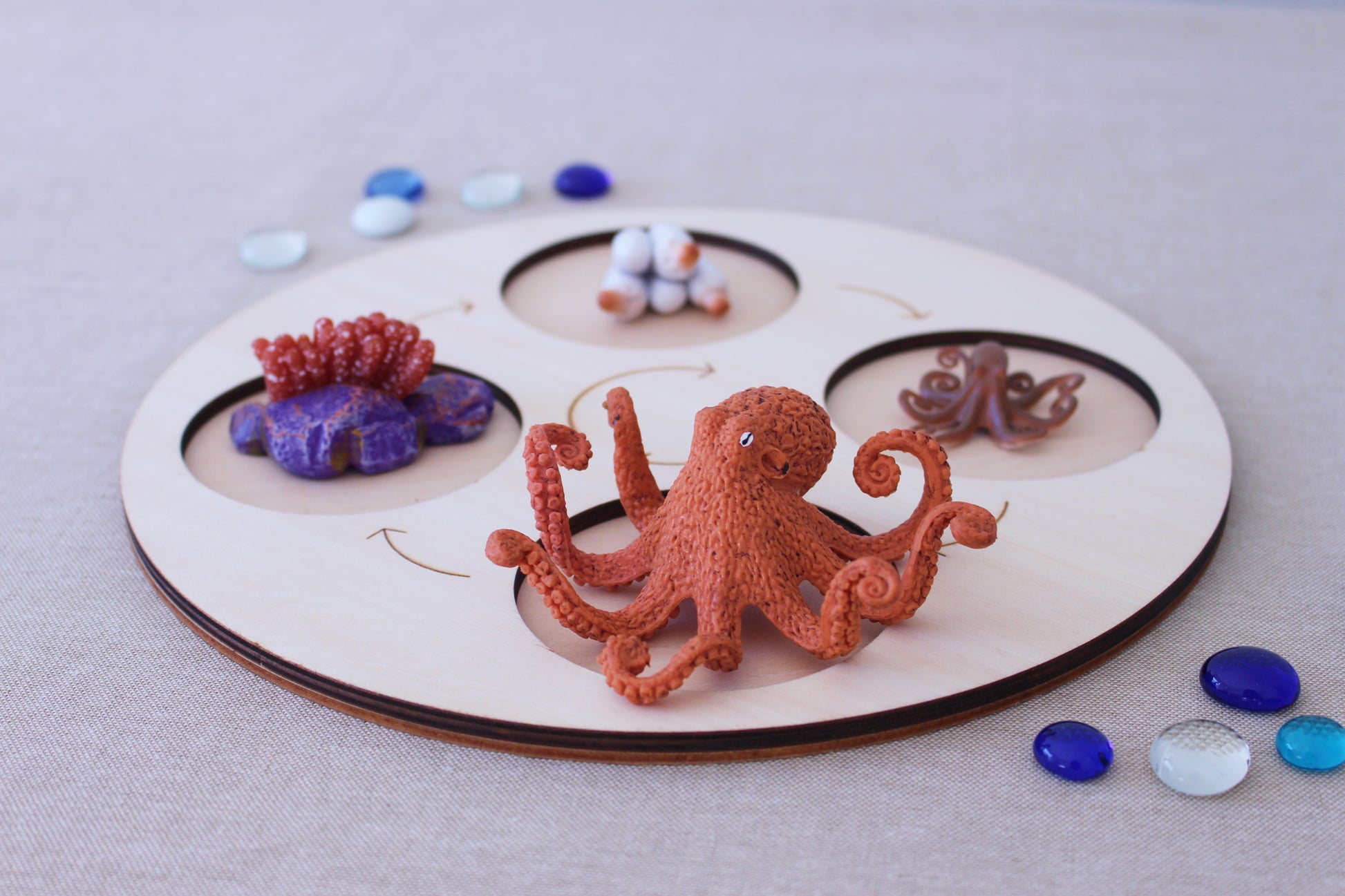 Encourage your child to investigate lifecycles with these cleverly designed figurines! This educational collection showcases the octopus' captivating transformation, providing an interactive and visually engaging way to explore nature's wonders.