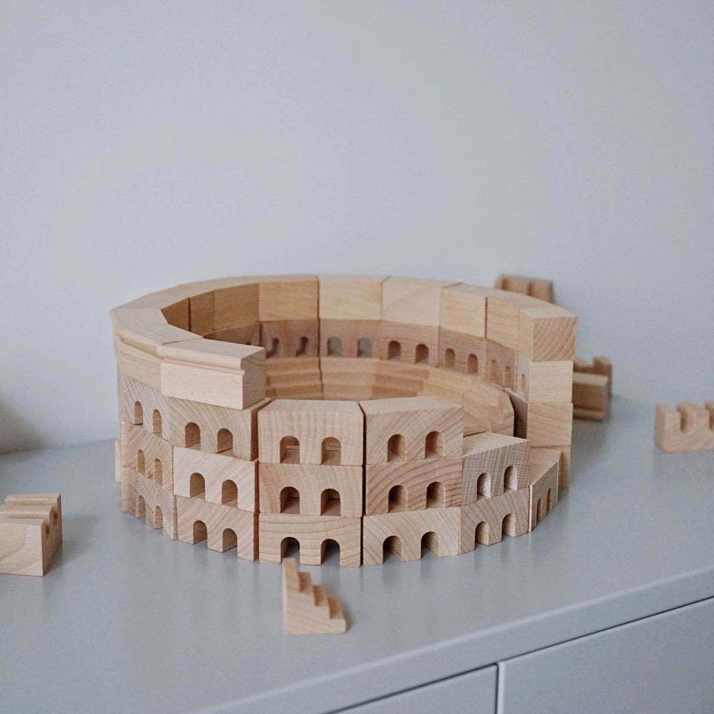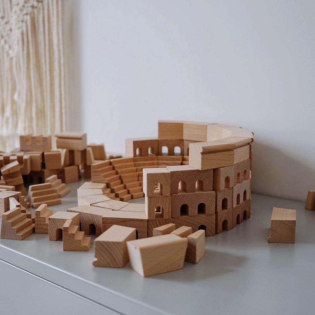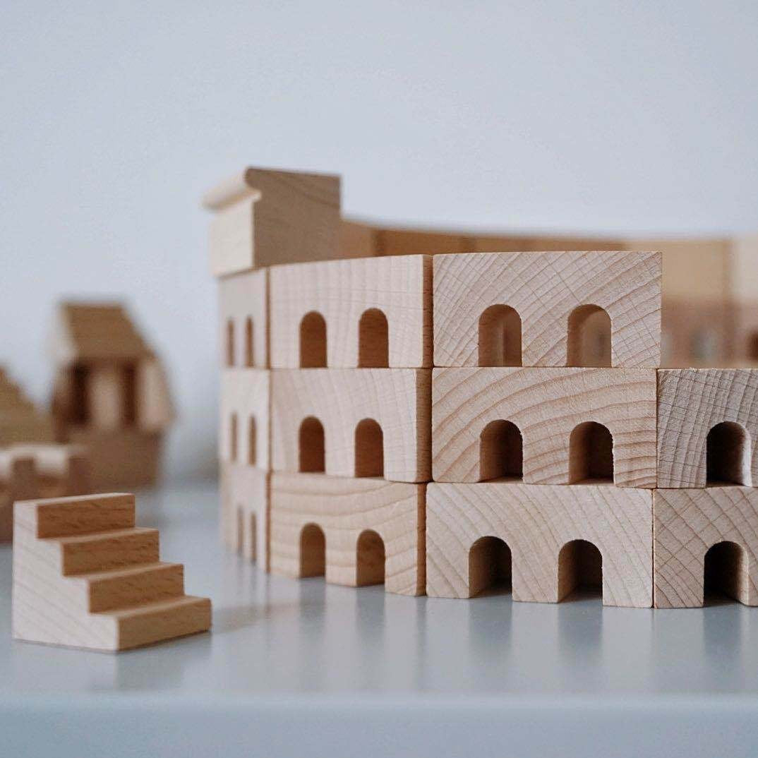 Roman Coliseum Wooden Architectural Building Blocks - 110 Piece Set