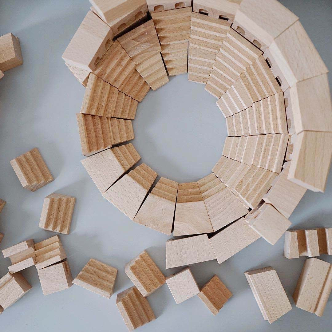 Bring the amazing splendor of ancient engineering to life. This 110pcs set is made of nature finish, high quality beechwood in 7 distinctive shapes. This is a truly open-ended toy that suitable for young and old. Playing in open-ended toy that frees kids imagination and encouraging independent play, helping development in fine motor skills , problem solving skills and creativity. It’s fun for entire family.