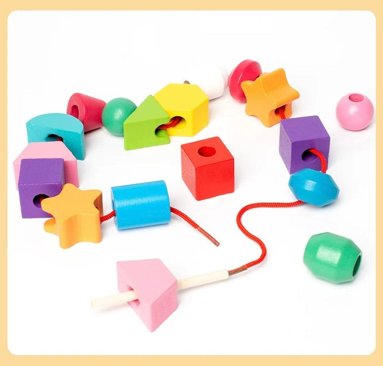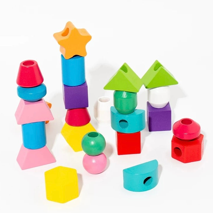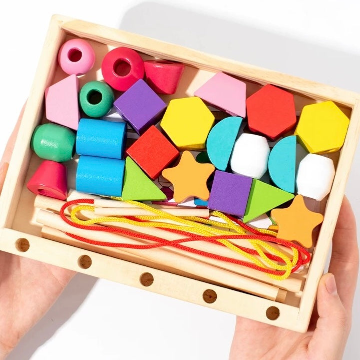 The colourful shape pieces can also be used for open-ended building and threading with the included shoestring, adding even more ways to play and learn. When playtime is over, everything neatly fits back into the tray for easy storage.