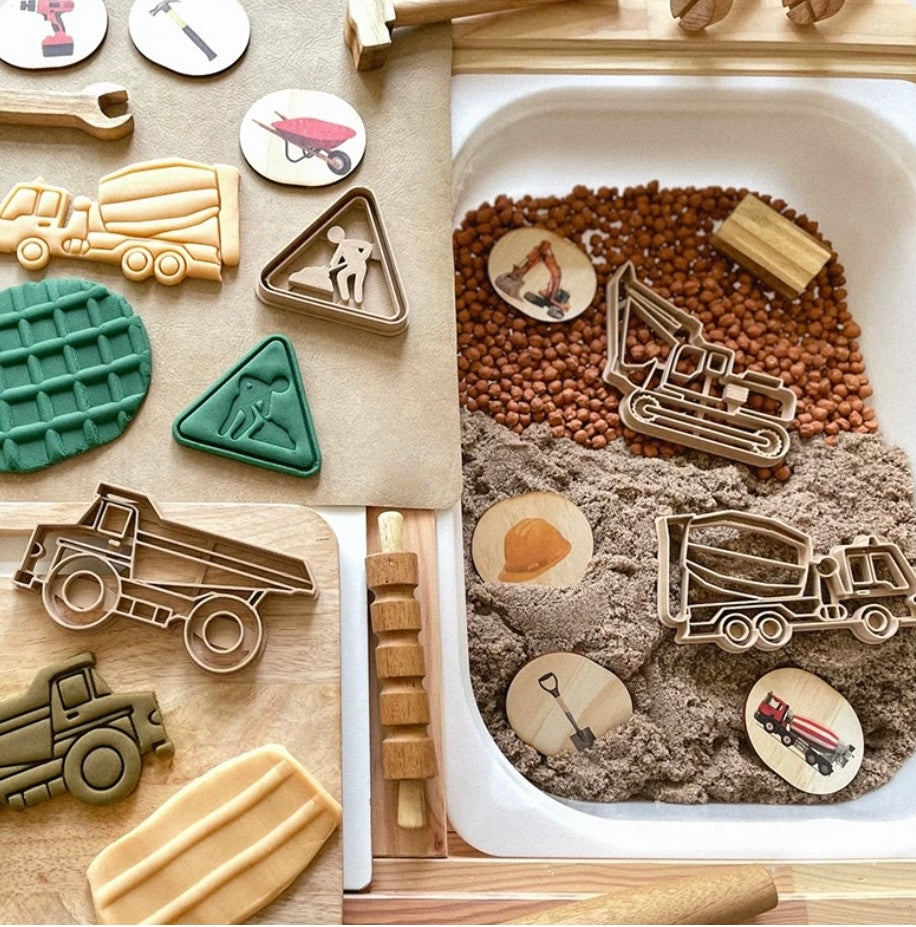 With these cutters, children can create their own construction site in play dough or clay. Shape transit mixers, excavators, and dump trucks while learning about the different vehicles and their roles.
