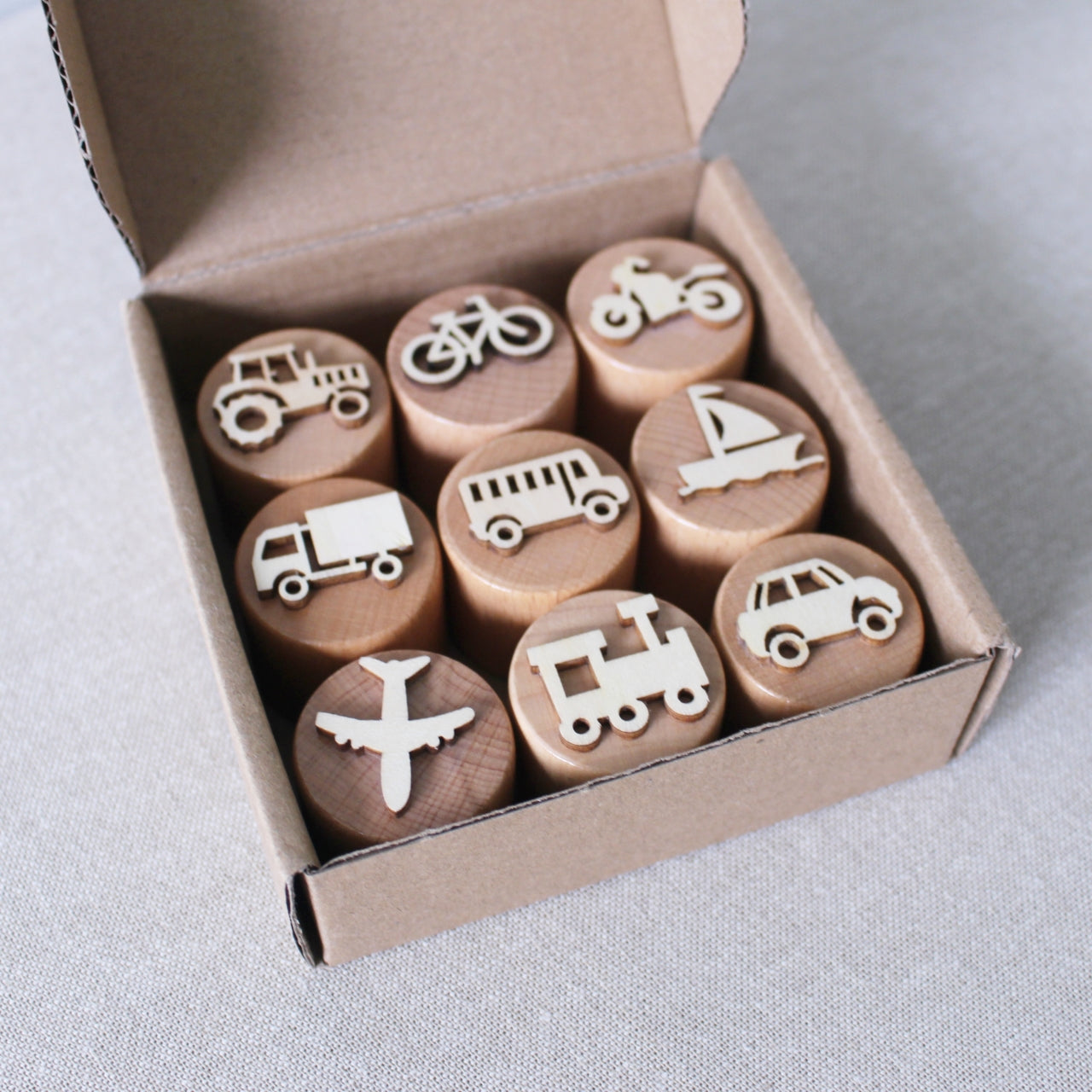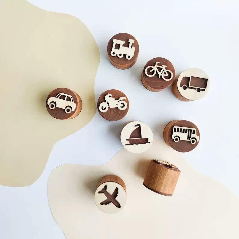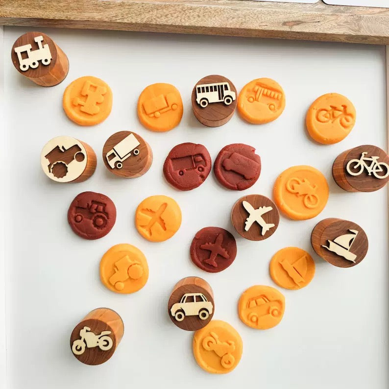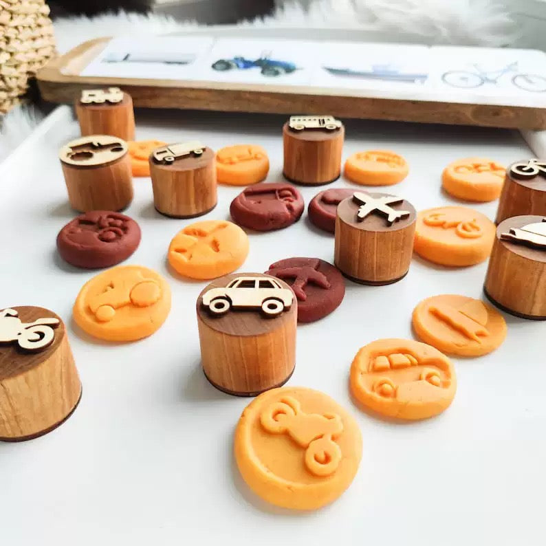 These cylindrical stamps are perfect additions to sensory play! Featuring vehicles like a car, tractor, airplane, and train, they can be used on dough, sand, or clay to create fun impressions. Encourage imaginative storytelling and spark creativity with this playful stamp set! (Suitable for kids and adults who never grew up!)