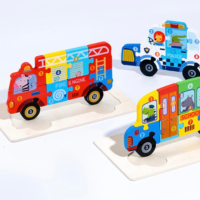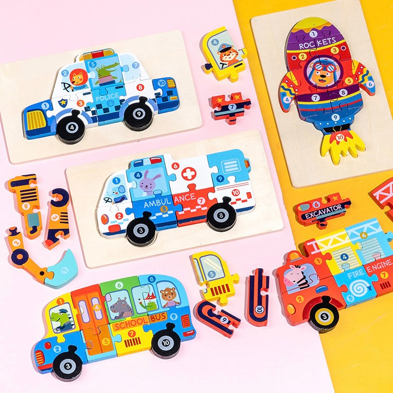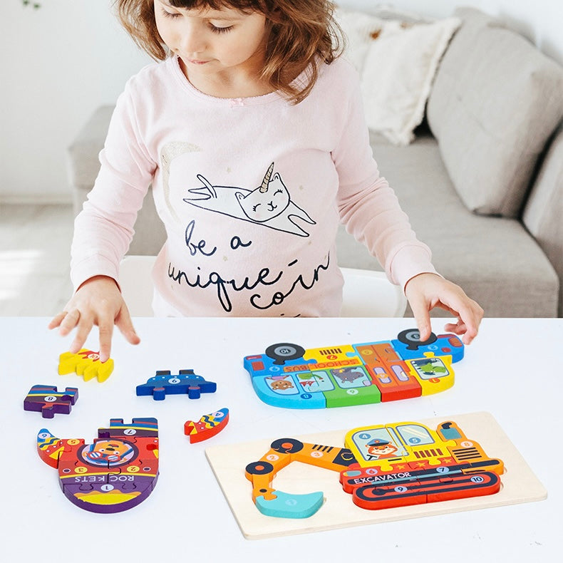 Things That Go Wooden Numbered Puzzles - Assorted Designs